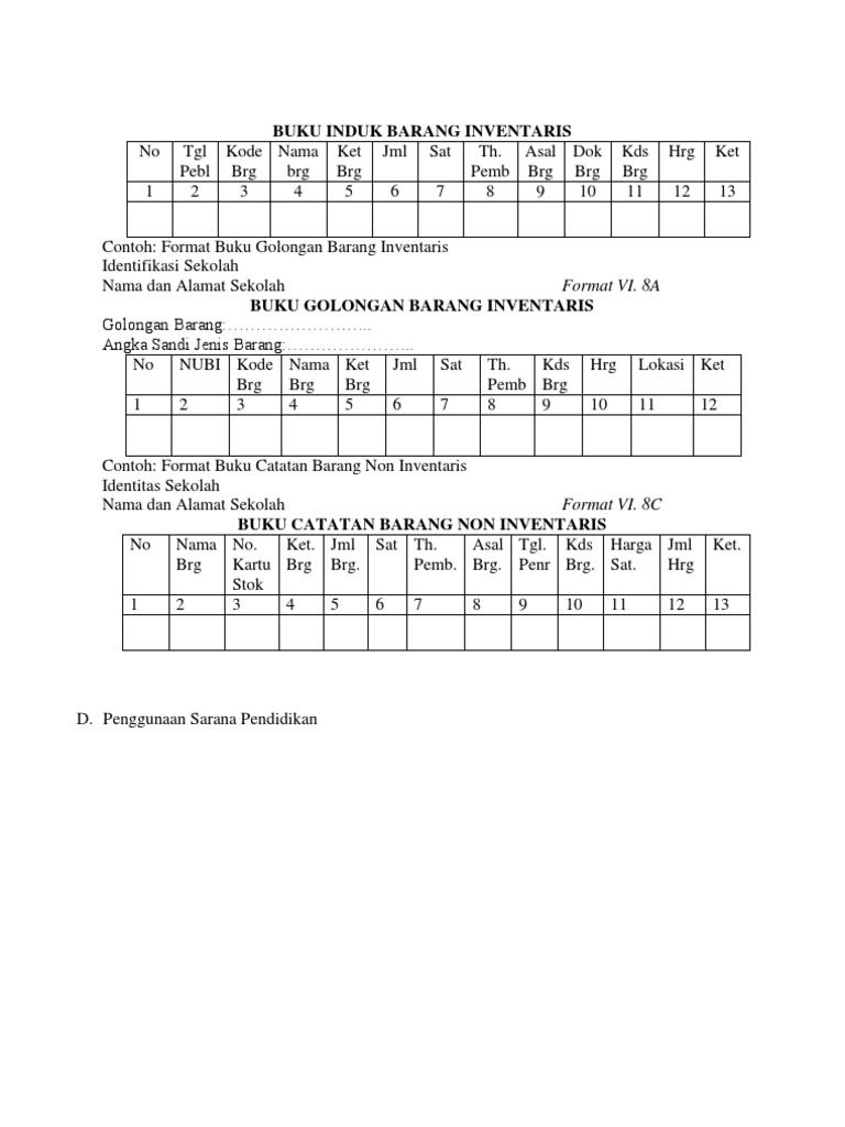 Buku agenda dan buku induk barang inventaris. Administrasi inventaris doc laporan inventaris sekolah microsoft word perangkat inventaris sekolah diterbitkan hari sabtu. C Buku Mutasi Barang Inventaris Buku ini untuk mencatat jumlah berkurangnya barang inventaris sebagai akibat mutasi atau penghapusan.