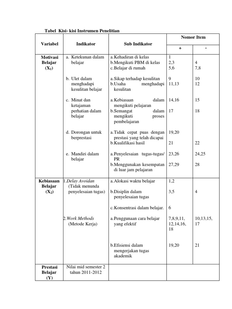 Doc Kisi Kisi Instrumen Motivasi Belajar Wildan Khoiruzzahro Academia Edu